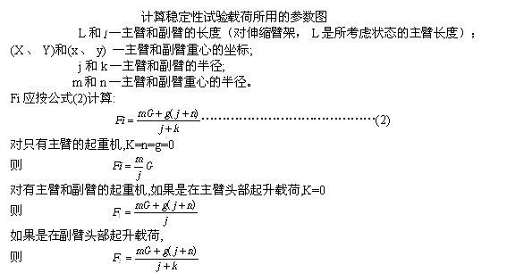 當(dāng)主臂的重量 G 很大而副臂的設(shè)計載荷又相對較輕時,則穩(wěn)定性試驗不應(yīng)把按公式(1) 求得的試驗載荷吊掛在副臂頭部進(jìn)行。此時,穩(wěn)定性要求可用計算來檢驗。